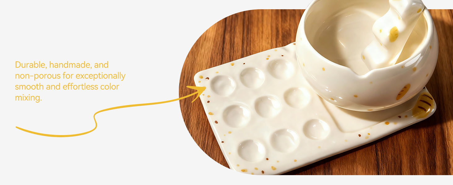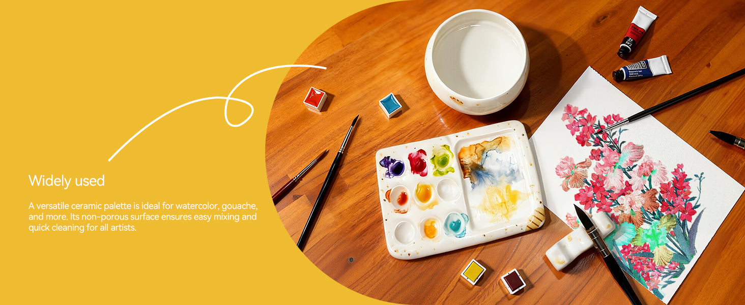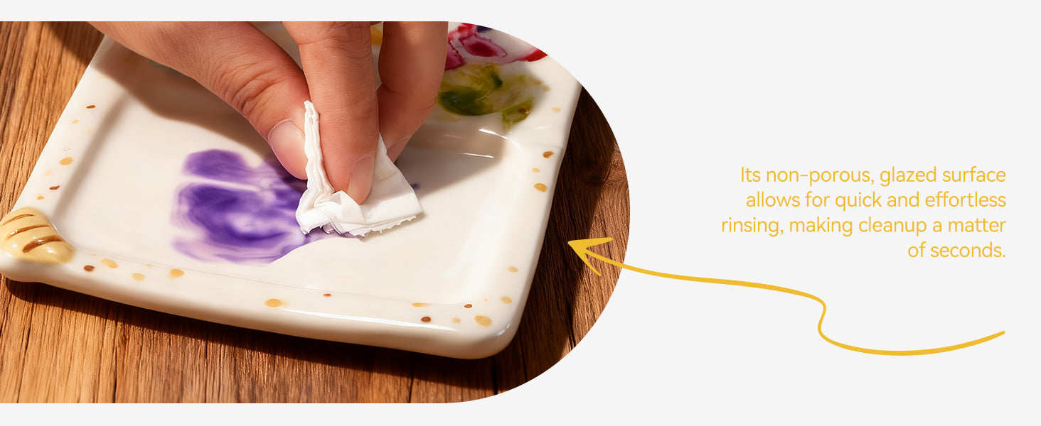 - Perfect Ceramic Mixing Surface-The glazed, non-porous ceramic palette prevents paint absorption. This makes colors stay vibrant and mixing accurate, while also allowing for effortless cleanup.