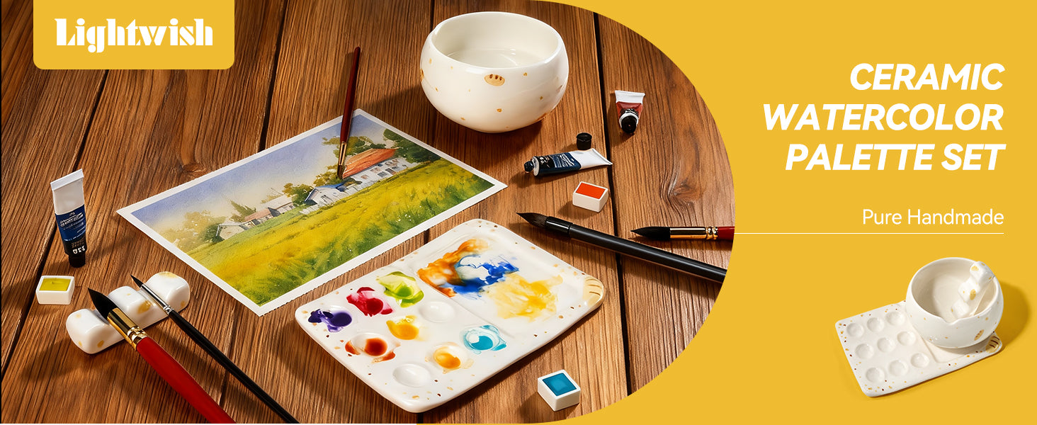 - Complete & Coordinated Set-This all-in-one kit includes a palette, brush rest, and water cup. All are crafted from the same premium ceramic, designed to work perfectly together for a seamless workflow.