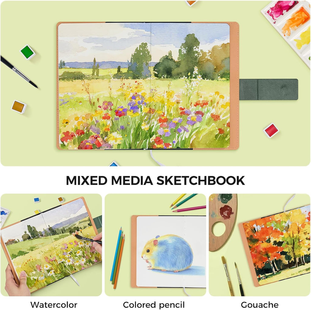 • Elegant and Durable, Perfect for Gifting:With its leather-textured cover and resilient construction, this watercolor paper pad is built to last and makes a thoughtful gift for artists of all levels.