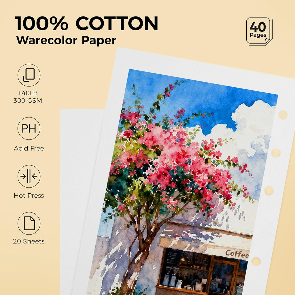 - Detachable & Replaceable Pages with Lay-Flat Binding:This watercolor journal features a convenient lay-flat binding that allows you to easily remove each sheet cleanly and effortlessly. Perfect for framing, scanning your finished artwork. The innovative binding also enables you to refill with your favorite paper, making the cover a lasting creative companion.