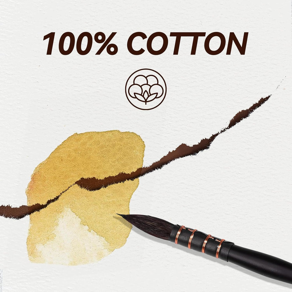 - Premium 100% Cotton & Acid-Free:Crafted from 100% cotton and completely acid-free, our archival-quality watercolor paper ensures your artwork remains vibrant and fade-resistant for years. Excellent color stability makes it ideal for wet-on-wet, dry brush, printmaking, and mixed media—unlocking endless creative potential.