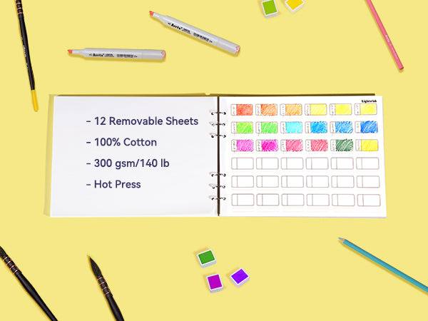 The Lightwish Watercolor Swatch Book is not limited to just watercolors. Its robust construction and premium cotton surface make it perfect for oil pastels, gouache, and colored pencils. This versatility allows artists to experiment freely, mixing mediums or techniques within a single, convenient book.